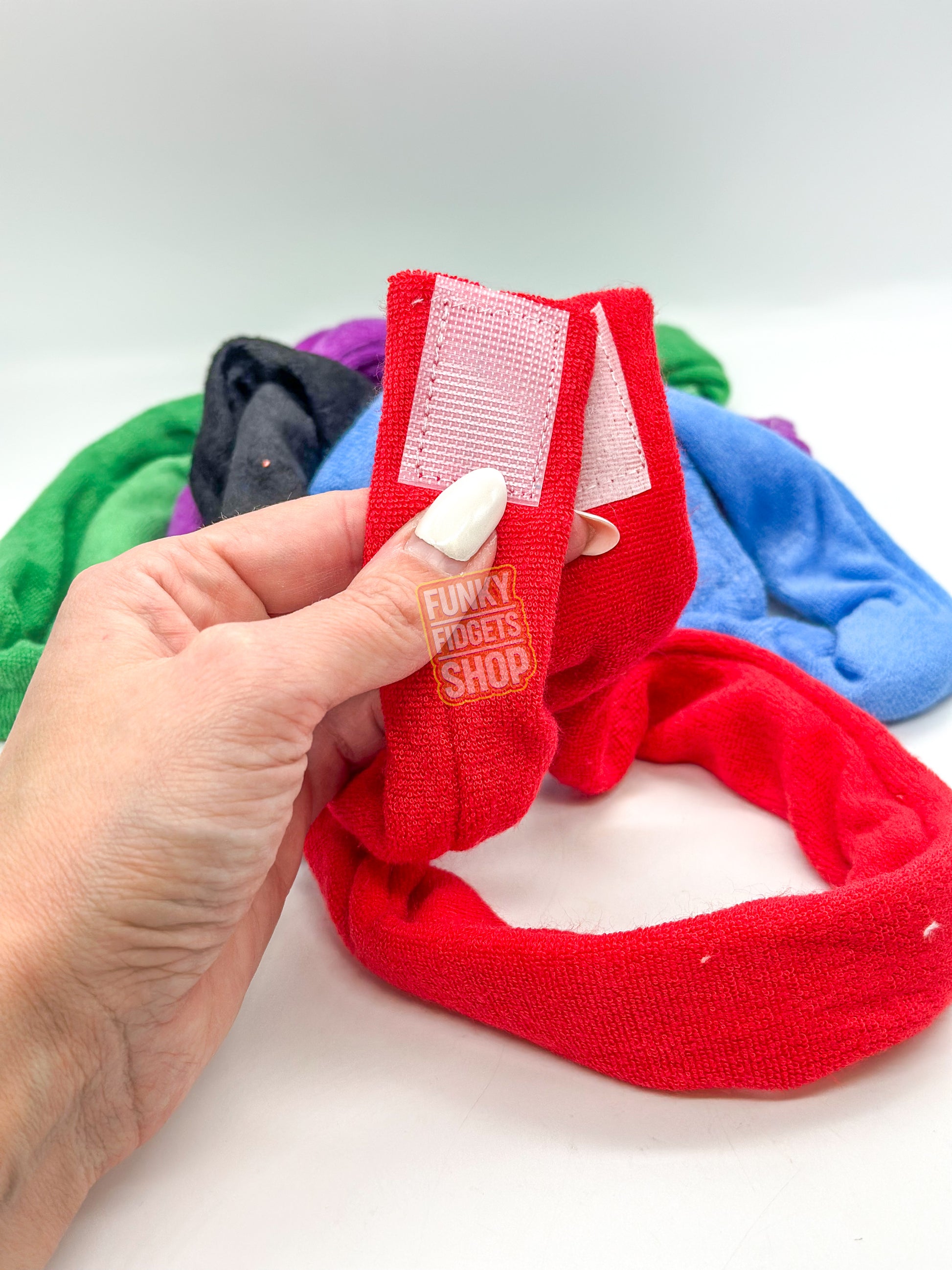 The model for these chew fabric bite bands is Mini April. 🖤