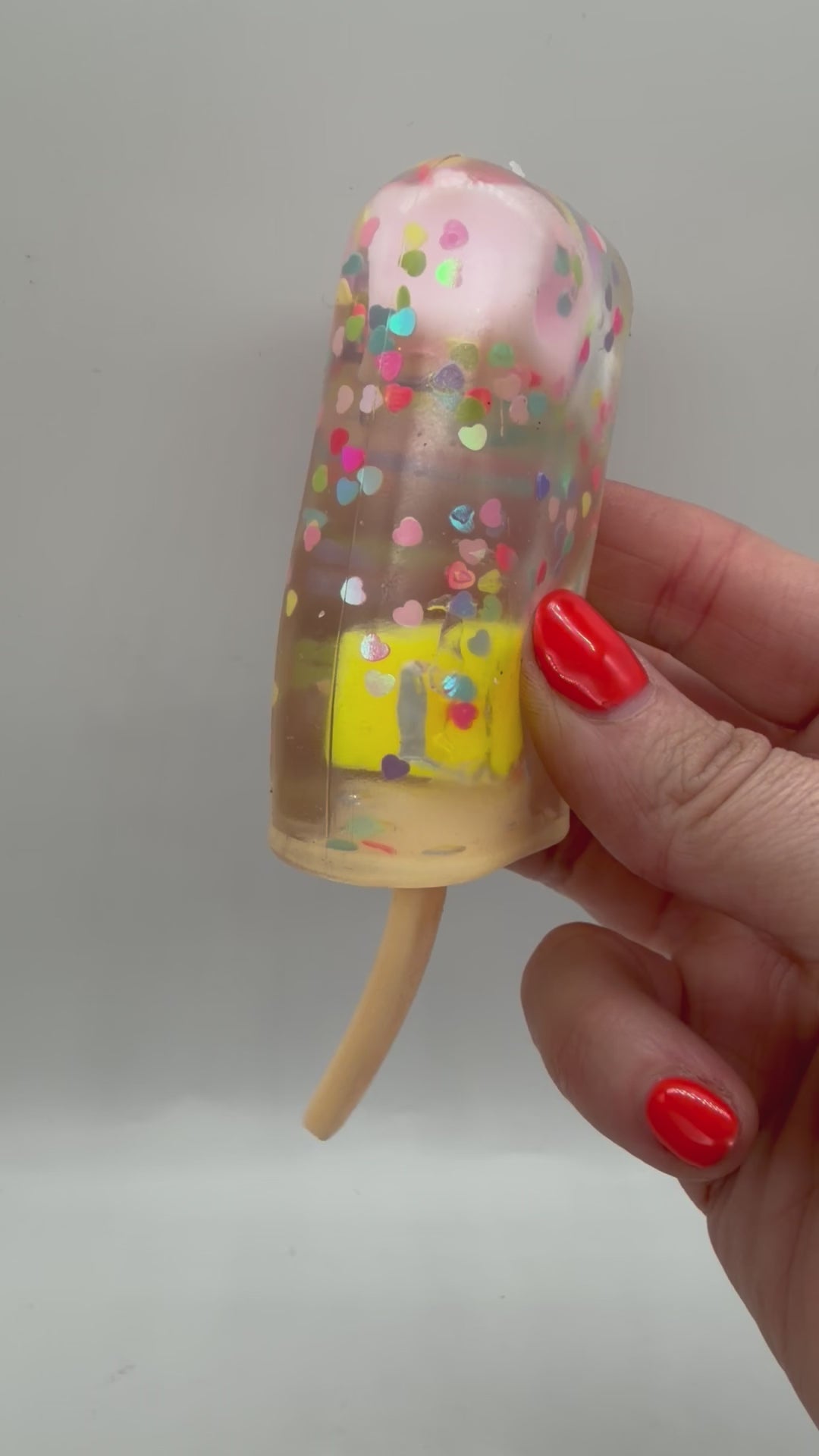 the ice lolly shaped squishes are filled with that mouldable sugar filling you all enjoy with added extra colourful squishy pieces to make it more visually satisfying