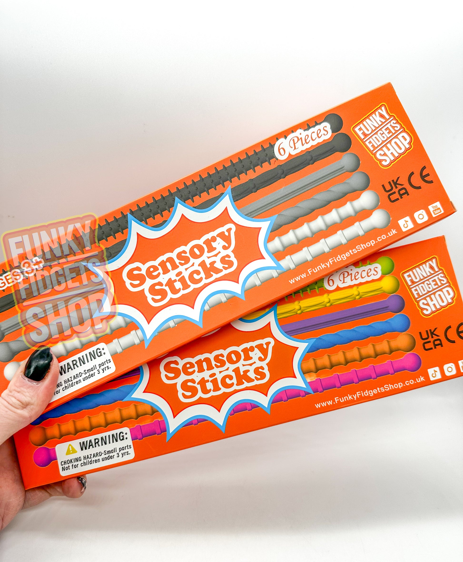 each pack has 6 different textured sensory sticks inside