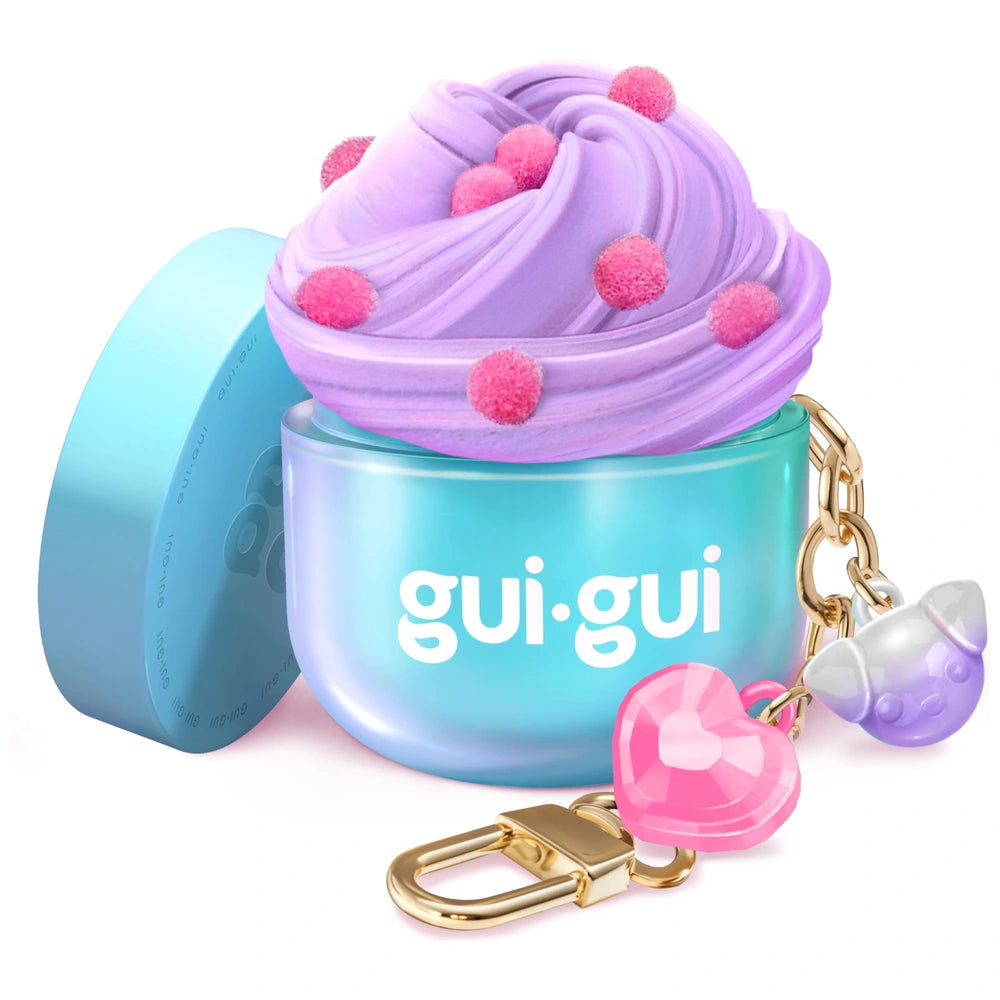 Follow the 5 easy steps to create your slime, then it's time to stretch, squish, and show off your stunning masterpiece. With four different Gui Gui slimes to collect and four fabulous textures; including Gloss, Clear, Butter, and Cloud; each jar offers a new way to play, create, and express your style. Start your Gui Gui Mini Jar set today and build the most dazzling keychain collection ever. Each sold separately.