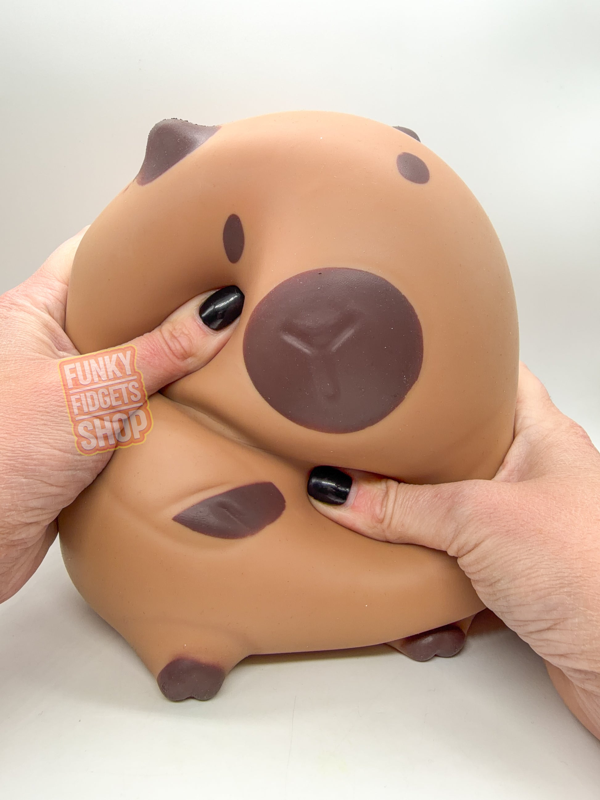 He’s our biggest one yet! The Jumbo Funky Capybara is heavy and huge with a thick skin and think dough like squish.
